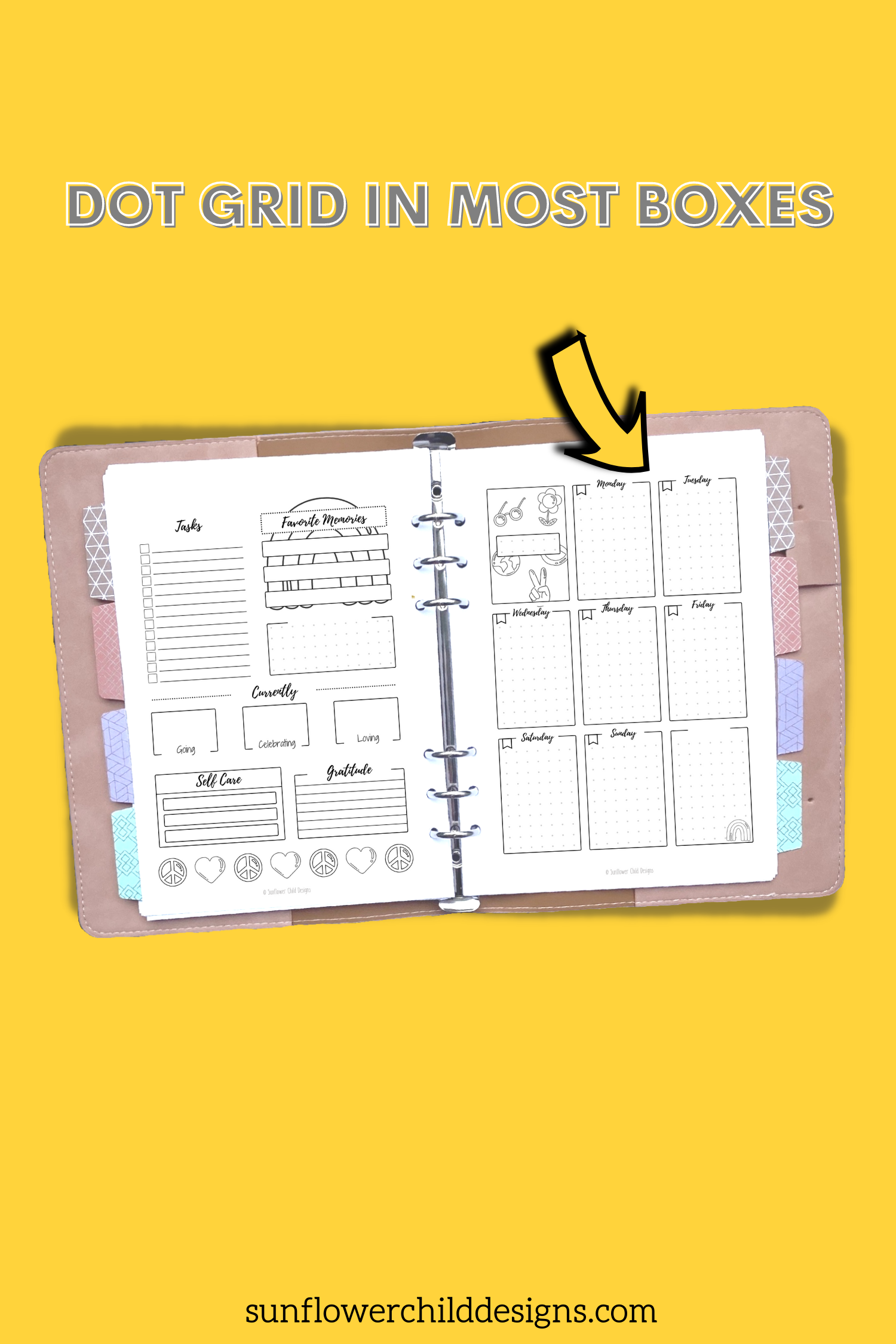 All spreads have optional headings, you can write them yourself or come up with other ways to use the pages. If you do not write in a planner more often than a week you can exclude printing the weekly spreads and mood tracker (like myself).
