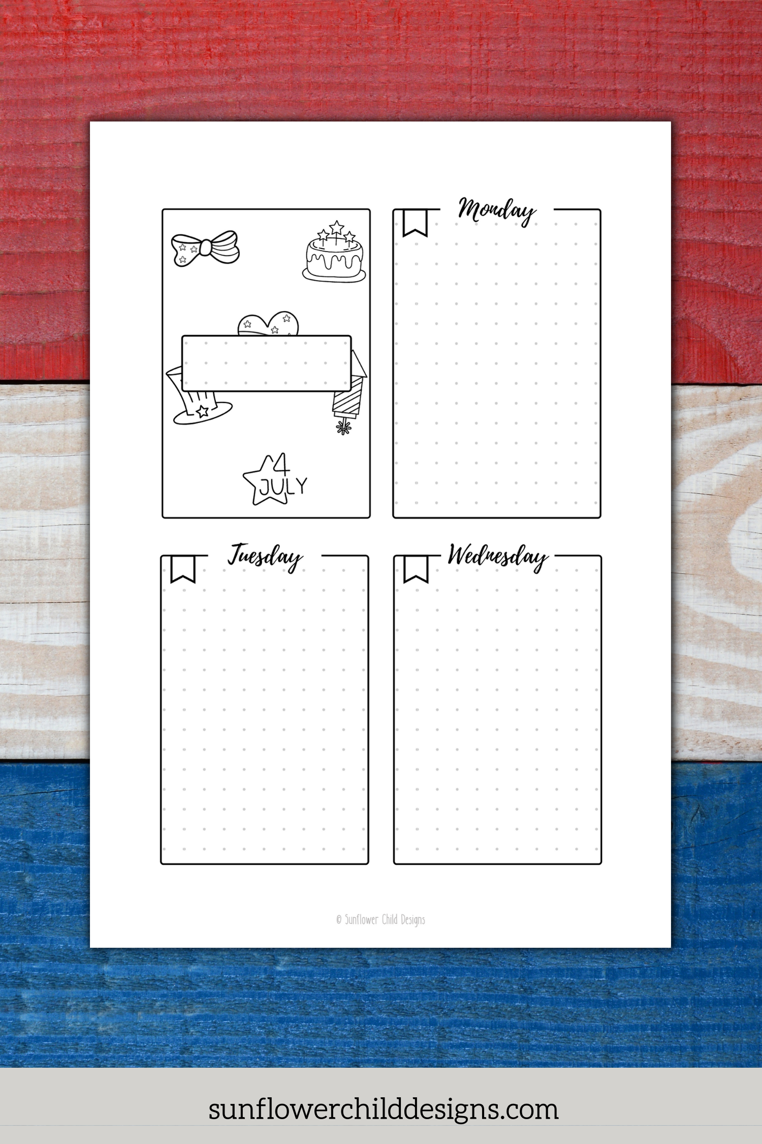 It’s time to ditch the boring journals and planners collecting dust. This monthly Happy 4th of July Themed bullet journal setup provides pages designed for YOU. While task lists are important this setup also includes pages to focus on your goals, self care, favorite memories for the month and so much more. These decorative pages awaken your inner child and help you let loose while simultaneously gets your adult life together. You’ll be inspired to get organized, focused, and creative!