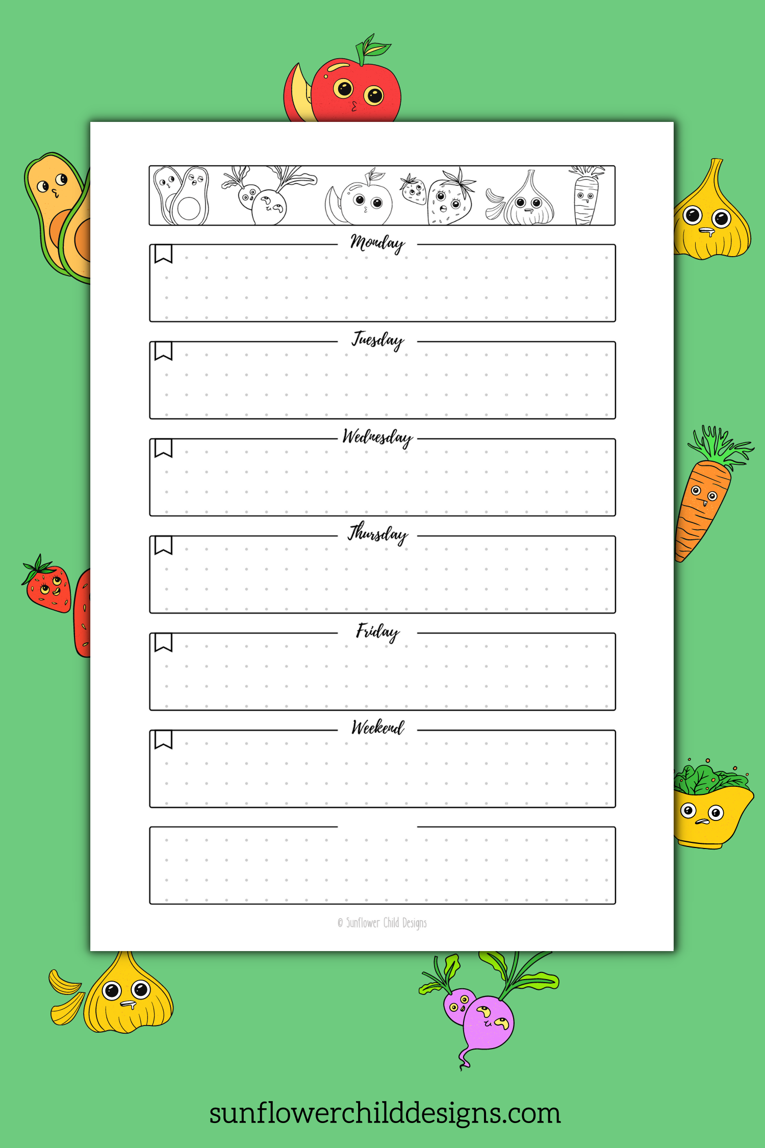 It’s time to ditch the boring journals and planners collecting dust. This Veggie Friends Themed bullet journal setup provides pages designed for YOU. While task lists are important this setup also includes pages to focus on your goals, self care, favorite memories for the month and so much more. These decorative pages awaken your inner child and help you let loose while simultaneously gets your adult life together. You’ll be inspired to get organized, focused, and creative!